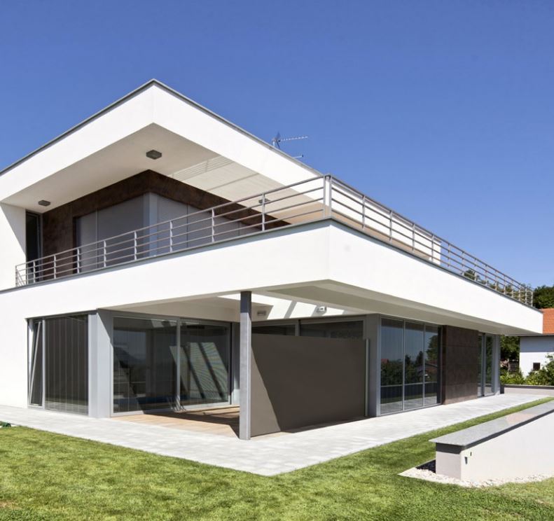Terasei ievelkamā sānu markīze ir uzstādīta uz vertikālām virsmām (uz pergola balsta, pie mājas sienas, kolonnas utt.). To ir ļoti viegli pielāgot jau esošajam interjeram.